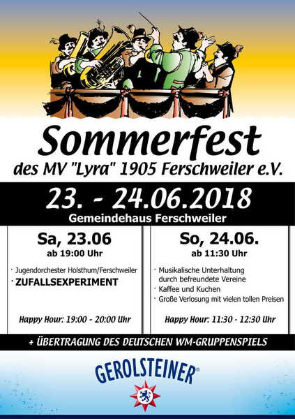 Der Musikverein Ferschweiler lädt sie herzlich zum traditionellen diesjährigen Sommerfest am 23. und 24. Juni am Dorfgemeinschaftshaus ein.